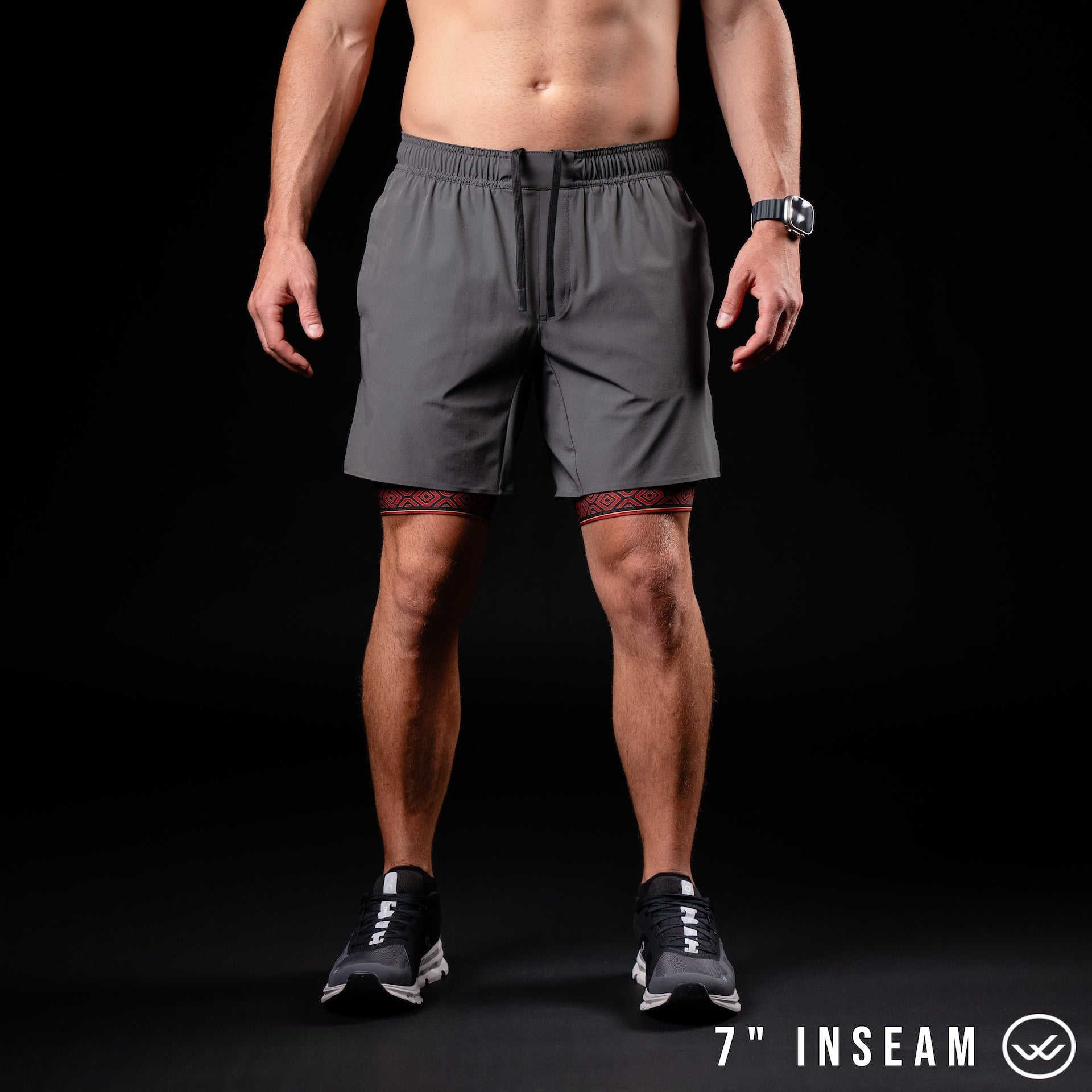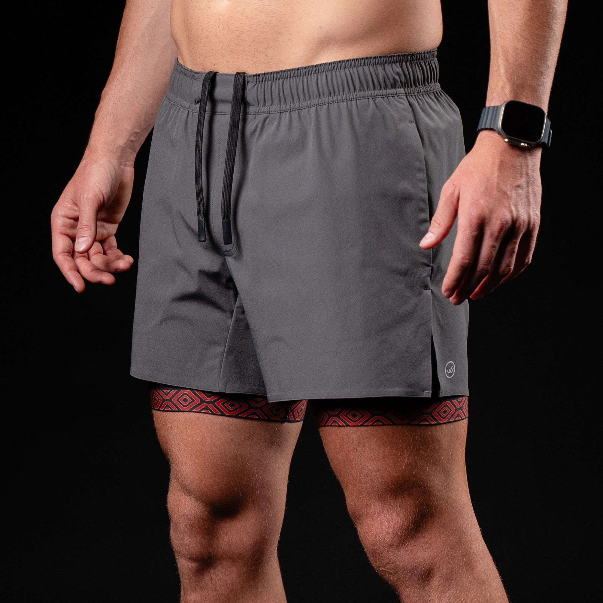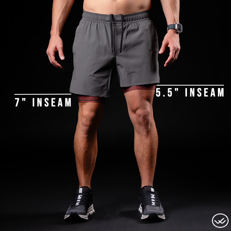 Saw new Mana 5in L charcoal short which came in limited quantity so seized the order as I started the 5k walk training and it would be perfect to hold phone and have appealing look which did draw interested people asking where to get it Enjoyed wearing it however I would be careful not to have my foot hold the liner while pulling up the short so it can be ripped? Just a reminder! :)
