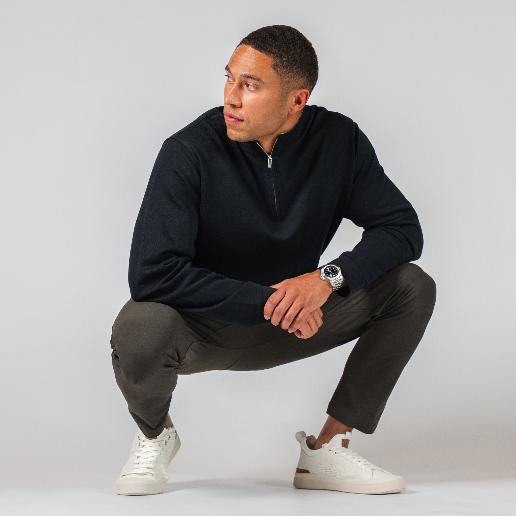 Smooth 4-way stretch performance fabric built for daily wear. It’s quick-drying and breathable, allowing the wrinkle-resistant weave to drape cleanly while keeping its shape through long days and repeat wears. 53% Elastomultiester, 47% Polyester for maximum mobility.